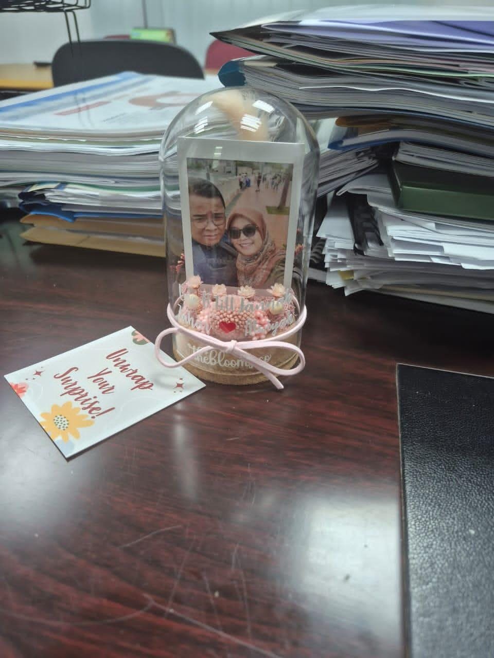Capture your most cherished moments in an elegant glass dome. Timeless Chapter features premium preserved flowers and a custom photo, softly enclosed under a clear dome — making it the perfect keepsake for anniversaries, birthdays, weddings, or any special occasion. Whether it’s a celebration of love, friendship, or milestones, this floral arrangement adds warmth and meaning to your space. A personalized gift that preserves precious memories — beautifully and forever.